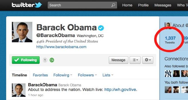 I bit late, but I just found this and it’s awesome. Obama’s tweet about his speech to announce the death of bin Laden was number 1337.